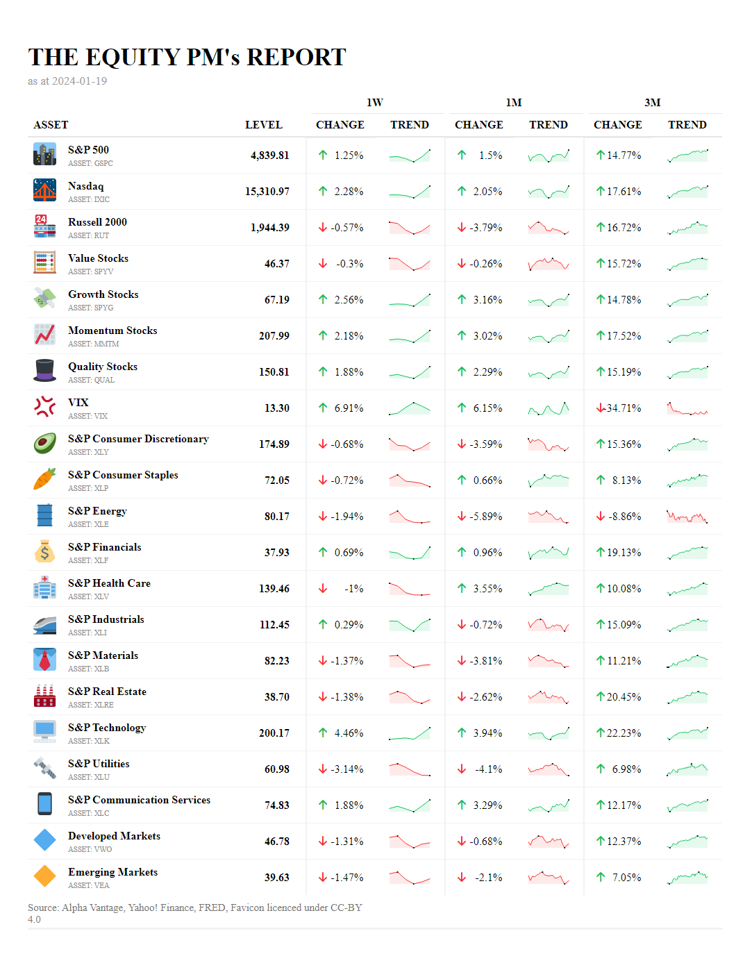 On the other hand, the Russell 2000 index has seen a slight weekly decline of 0.57%, signaling a continuation of the recent caution surrounding small caps. Sector-wise, S&P Technology sector was once again the standout performer with a 4.46% weekly increase and a robust 22.23% growth over three months, buoying headline indices despite challenging results from other sectors like Energy and Utilities.